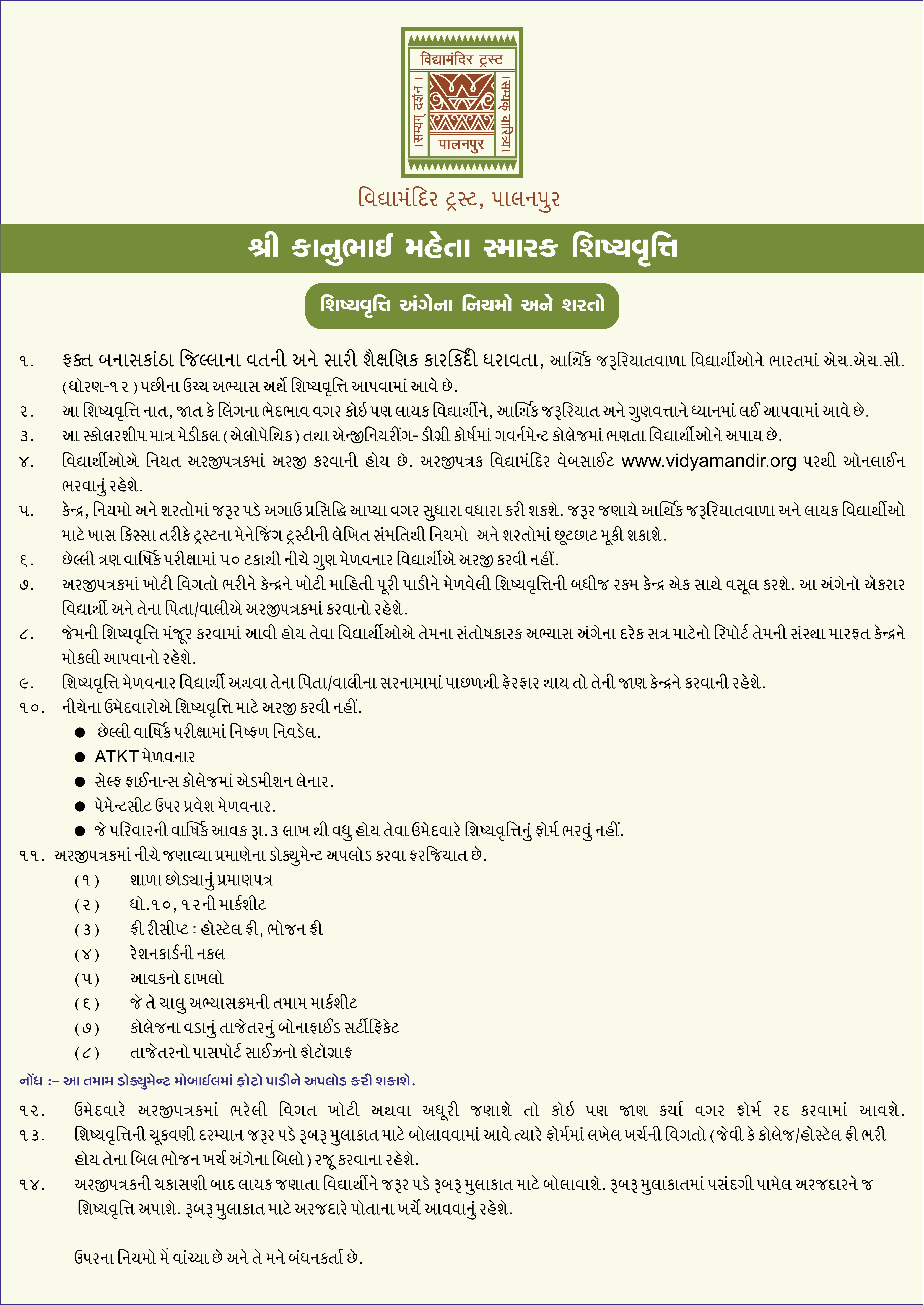 / શ્રી કાનુભાઈ મહેતા સ્મારક શિષ્યવૃત્તિ - 2025